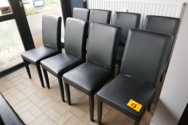 Houten horecastoelen met zitting in zwarte kunstlederen bekleding : 8 stuks