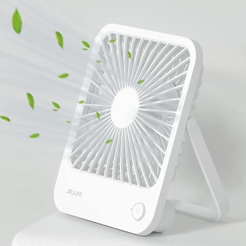Ongebruikt, getest, ok, JISULIFE Draagbare mini-ventilator, met oplaadbare batterij van 4500 mAh, kleine 180 graden opvouwbare ventilator, stille ventilator met 4 snelheden, geschikt voor thuis/kantoor/reizen, wit, B09PDC3JLB