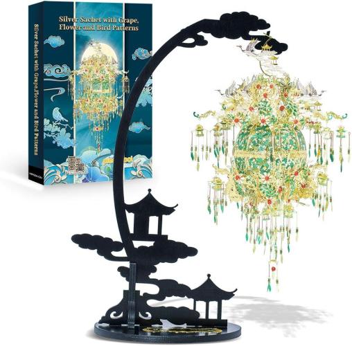 Piececool 3D puzzel voor volwassenen - zilveren zak met druiven-, bloemen- en vogelpatronen DIY 3D-metalen modelbouwset voor volwassenen, 14+, B0912CGKFL