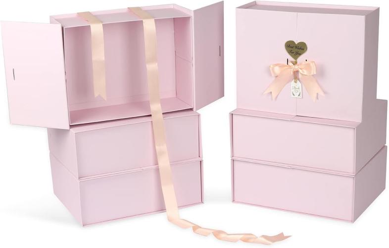 Geschenkdoos met deksel, kleine geschenkdozen met strik, met dubbele deur, (M (28 x 20 x 10 cm), verpakking van 6, roze), B0BRFWDLFW