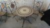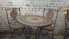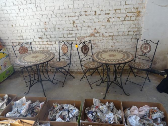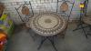Tafel 700x730, stalen frame met mozaïk inleg, stoelen inklapbaar.