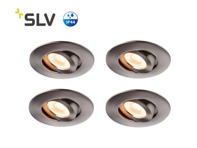 Deze SLV Easy install Led spots passen zowel goed in een modern als klassiek interieur en kunnen hun plaats vinden in de keuken, woonkamer, in slaapkamers of in badkamers. De led spots zijn sptwaterdicht afgewerkt en daardoor geschikt voor zowel droge als vochtige ruimtes. Het grote voordeel van deze spots is dat ze een eigen hoogte hebben van slechts 3.2 cm waardoor ze in snel en eenvoudig alle plafonds te plaatsen zijn. De armaturen zijn voorzien van een duurzaam led lampje en zijn dimbaar en kunnen daardoor zowel voor hoofdverlichting als sfeerverlichting zorgen. SLV type: 1001591, Model: EASY-INSTALL SLIM LED, Afmetingen: 8.7 cm. Uitspraing 7.5 cm, inbouwhoogte: 3.2 cm. Kantelbaar: Ja. Lichtbron, ja, Led. Lichtkleur: warm wit, Lichtsterkte: 6.2 Watt. Kleur: Aluminium. Afwerking: Geborsteld, Spatwaterdicht: Ja, IP44. Dit betreft een volledig nieuw product