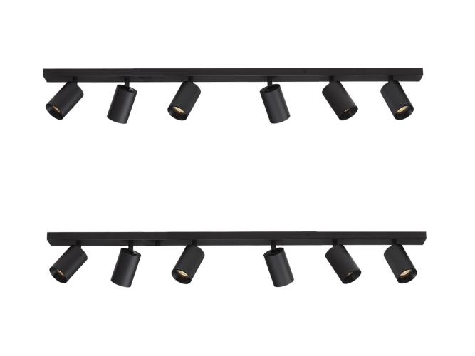 Lineair plafond / wand armatuur voorzien van 6 kantelbare spots. Geschikt voor gebruik in de woonkamer, de gang, slaapkamers, tevens geschikt voor verlichting van een etalage, ontvangstruimten, vergaderplekken of studeerruimtes. De spots zijn compact, volledig kantel en roteerbaar en te gebruiken met ieder led of halogeen lampje van het type GU10. De armaturen zijn mat zwart van kleur en zijn dimbaar. Type: plafond armatuur, opbouw, lichtpunten 6 x Fitting: GU10, Aansluiting: 230V, Dimbaar: ja. Conditie: Nieuw. Kleur: zwart mat Dit betreft een nieuw product.Gratis verzending