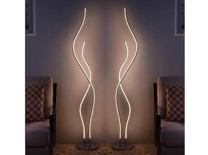 Product eigenschappen: Aantal lichtbronnen: 2. Afmeting ca.: 165 cm x 24 cm x 32 cm. Lichtbundel ca 145 graden. Lichtkleur: Warm wit Aansluiting: 230 Volt. Kleur: Zilver. Afwerking: Glans. Dit betreft een nieuw productDeze bijzondere vloerlampen geven een unieke uitstraling en kunnen in meerdere ruimten worden gebruikt zoals in de woonkamer, in slaapkamers, in studeerkamers of speelkamers, maar ook in werkruimten, ontvangstplekken of in de showroom. De lamp is voorzien van 2 onafgebroken opalen led lichtbronnen welke een uniek en tijdloos licht effect geeft. De lampen voelen zich goed nabij een muur, in een hoek maar ook vrijstaand. De plaatsing kan dankzij de lichtgewicht eigenschappen snel en direct plaats vinden.