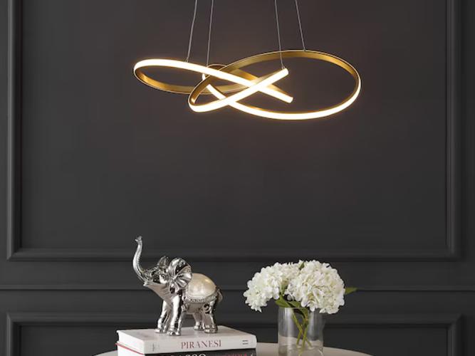 Dit bijzondere design armatuur geeft een unieke uitstraling en past in meerdere ruimten zoals de woonkamer, in slaapkamers, in de gang of vide, maar kan ook in de werkkamer, in ontvangstruimten of in de showroom worden gebruikt. Deze prachtige hanglamp is voorzien van een onafgebroken opalen led lichtbron welke een uniek en tijdloos licht effect geeft. De kleur van het licht is instelbaar van warm wit licht, naar neutraal wit licht, naar daglicht wit, zo kan deze chique pendellamp zich aanpassen aan de gebruikte ruimte en kan hij overal net even iets anders zijn. De montage is eenvoudig en kan dankzij de lichtgewicht eigenschappen snel plaats vinden, dankzij de flexibele ophangset is de lamp eenvoudig in hoogte te verstellen te kantelen en te positioneren. Product eigenschappen: Aantal lichtbronnen: 1. Afmeting ca.: 1200 mm x 600 mm x 800 mm.Lichtbundel ca 165 graden. Licht sterkte 60 Watt: Lichtkleur instelbaar: 3000K (Warm wit) 4000K (Neutraal wit) 6000K (Daglicht wit)Aansluiting: 230 Volt. Kleur: Goud. Afwerking: Glanzend. Dit betreft een nieuw product, Gratis verzending Benelux