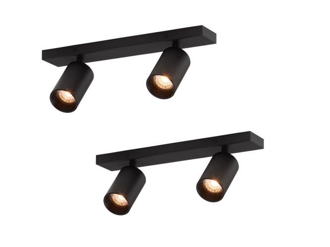 Lineair plafond / wand armatuur voorzien van 2 kantelbare spots. Geschikt voor gebruik in de woonkamer, de gang, slaapkamers, tevens geschikt voor verlichting van een etalage, ontvangstruimten, vergaderplekken of studeerruimtes. De spots zijn compact, volledig kantel en roteerbaar en te gebruiken met ieder led of halogeen lampje van het type GU10. De armaturen zijn mat zwart van kleur en zijn dimbaar. Type: plafond armatuur, opbouw, lichtpunten 2 x Fitting: GU10, Aansluiting: 230V, Dimbaar: ja. Conditie: Nieuw. Kleur: zwart mat Dit betreft een nieuw product.