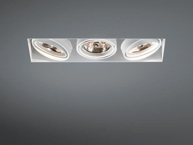 Deltalight grid in trimless armatuur, randloze design inbouw spots, geschikt voor kantoor, winkel, showroom, ontvangstruimten, ook in woonkamer, de keuken, in slaapkamers, inloopkasten. Kardanisch kantelbaar en in hoogte verstelbaar, dimbaar, geschikt voor led en halogeen lampen van het type AR70. Merk: Deltalight, Type: 202710003W, Afmeting ca.: 10.4 x 10.4 x 30.4 cm. Max aantal lichtbronnen: 3. Kardanisch verstelbaar: Ja. Dimbaar: Ja. Kleur: Wit