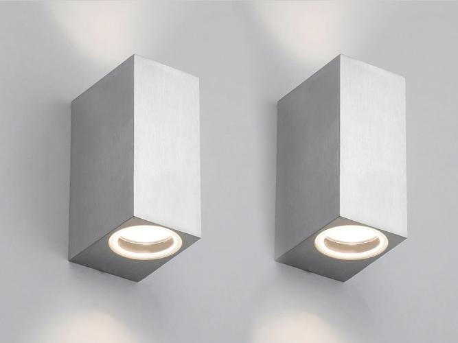 Met deze wandspots kun je op een leuke en snelle manier prachtige licht decoraties creëren. De wandlampen schijnen het licht zowel naar boven als naar beneden en zullen zowel voor een praktische als sfeervolle verlichting zorgen. Met deze wandlampen kun je op eenvoudige wijze een gevel, een poort of het terras uitlichten, maar ook de garage, de tuinafscheiding of de overkapping. De wandlampen zijn spatwaterdicht afgewerkt, hebben als groot voordeel dat niet te veel ruimte in beslag nemen en snel te plaatsen zijn. De wandlampen geven veel sfeervol licht, zijn volledig dimbaar en te gebruiken met ieder halogeen of led lampje van het type GU10. Afmeting ca 8 x 7 x 15 cm. Spatwaterdicht: Ja, IP54, Kleur: RVS, geborsteld.