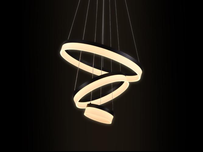 Allegra 360 design armatuur zwart, Aantal lichtbronnen: 3. Afmeting ca.: 60 cm + 40 cm + 20 cm. Kardanisch verstelbaar: Ja. Dimbaar: Ja. Lichtbundel ca 165 graden. Lichtkleur: warm wit. Aansluiting: 230 Volt. Kleur: Zwart. Afwerking: Mat. Het zeer bijzondere Allegra design armatuur beschikt over 3 x afzonderlijk draai- en kantelbare ringen welke allemaal voorzien zijn van een warm witte led lichtbron. De lichtbron is voorzien van een diffusor en schijnt zowel rondom als naar beneden. Dankzij de ophangset is mogelijk om alle 3 ringen afzonderlijk van elkaar in hoogte te verstellen en te positioneren. Ook is het mogelijk om het armatuur te gebruiken met minder ringen. Zo kan deze chique pendellamp in iedere ruimte net even anders zijn. Deze modern vormgegeven hanglamp geeft een unieke uitstraling en past in meerdere ruimten zoals de woonkamer, keuken of gang, maar ook in de slaapkamer, werkkamer of andere woon en leefruimten. Dit betreft een nieuw product