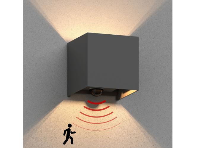 Cube Motion Sense wand armaturen, geschikt voor zowel binnen als buitengebruik, voorzien van bewegins sensor. Geschikt voor gebruik bij toegang of entree, of aan gevels, aan het tuinhuis of garage. Het licht van de armaturen schijnt zowel naar boven en naar beneden, en kan zowel naar boven als naar beneden breder en smaller gemaakt worden. Eenvoudig montage, voorzien van een A++ klasse led met een warm witte lichtkleur en een sterkte van 8 Watt Led. Afmeting 10.5 x 10.5 x 10.5 cm. Kleur: Grijs/Antraciet, Afwerking mat. Spatwaterdicht: Ja, IP54, Type: Wand armatuur, met bewegingsmelder, Bijzonderheden: Dit product is volledig nieuw.