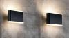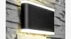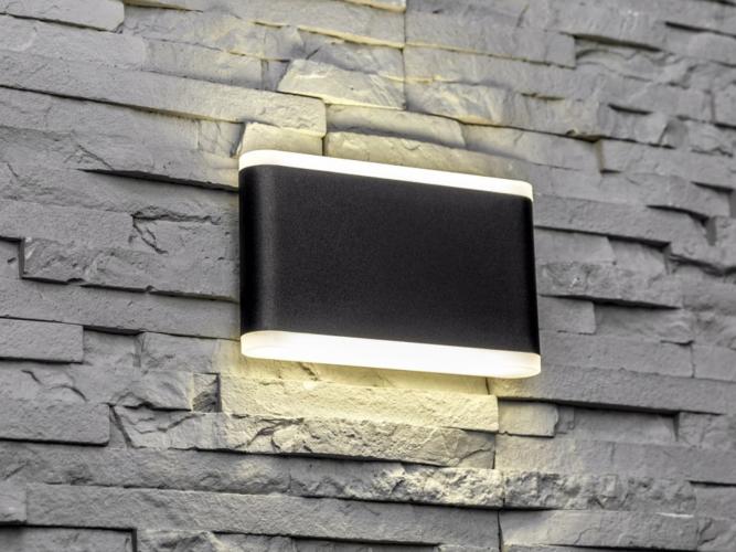 Deze prachtig vormgegeven wandspots schijnen het licht op een zeer sfeervolle manier zowel naar boven en naar beneden. Het grote voordeel van deze armaturen is dat ze slechts 3 cm uit de wand steken waardoor ze weinig ruimte in beslag nemen en op een subtiele wijze in de ruimte aanwezig zijn. De wandlampen kunnen perfect in de aan de voor of achter gevel, in de serre, aan de tuinafscheiding of op het terras worden gebruikt, maar kunnen ook in de woonkamer, de keuken de gang of de badkamer van extra sfeerlicht voorzien. De armaturen zijn snel en eenvoudig te monteren zullen in iedere ruimte voor een chique en unieke uitstraling zorgen. Lichtsterkte 2 x 6 Watt Led. Kleur behuizing: Zwart Afwerking: Mat. Afscherming: IP54 spatwaterdicht. Licht kleur: warm wit.