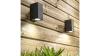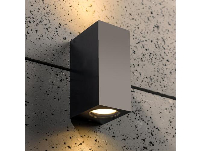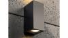 Met deze gevelspots kun je op een leuke en snelle manier prachtige licht decoraties en een sfeervolle tuin creëren. De wandlampen schijnen het licht zowel naar boven als naar beneden en zullen zowel voor een praktische als sfeervolle verlichting rondom het huis en tuin zorgen. Met deze wandlampen kun je op eenvoudige wijze een deur, een pad of een muur uitlichten, maar ook het terras, de tuinafscheiding of de overkapping. De wandlampen hebben als groot voordeel dat niet te veel ruimte in beslag nemen, snel te plaatsen zijn en veel sfeervol licht geven. De spots zijn spatwaterdicht afgewerkt, volledig dimbaar en te gebruiken met ieder halogeen of led lampje van het type GU10. Afmeting ca 8 x 7 x 15 cm. Spatwaterdicht: Ja, IP54, Kleur: Zwart mat.