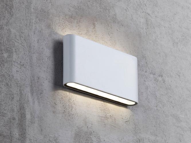 Deze prachtig vormgegeven wandspots schijnen het licht op een zeer sfeervolle manier zowel naar boven en naar beneden. Het grote voordeel van deze armaturen is dat ze slechts 3 cm uit de wand steken waardoor ze weinig ruimte in beslag nemen en op een subtiele wijze in de ruimte aanwezig zijn. De wandlampen kunnen perfect in de aan de voor of achter gevel, in de serre, aan de tuinafscheiding of op het terras worden gebruikt, maar kunnen ook in de woonkamer, de keuken de gang of de badkamer van extra sfeerlicht voorzien. De armaturen zijn snel en eenvoudig te monteren zullen in iedere ruimte voor een chique en unieke uitstraling zorgen. Lichtsterkte 2 x 6 Watt Led. Kleur behuizing: Wit. Afwerking: Mat. Afscherming: IP54 spatwaterdicht. Licht kleur: warm wit. Afmeting ca.: 17 x 9 x 3 cm.
