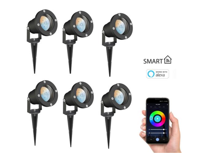 Deze tuin spots zijn snel te plaatsen en geven direct veel sfeervol licht. Ze kunnen rondom het huis en de tuin worden toegepast voor een praktische verlichting van een pad of entree, maar ook om het terras, de afscheiding of het tuinhuis op een mooie manier te uit te lichten. Het grote voordeel van deze spots is dat ze zowel middels een app als middels Alexa of Google Home aan te sturen zijn. De spots zijn in te stellen in een schema of als scene, aan te sturen op muziek maar zijn ook dimbaar en in alle kleuren instelbaar tussen extra warm wit en daglicht wit. Zo creëer je op snelle wijze zeer unieke en bijzondere licht decoraties welke je tuin direct sfeervol zullen maken. Product eigenschappen: Afmeting: 15 cm hoog x 10 cm diameter + 17 cm voet. Fitting: GU10, afscherming: IP65 spatwaterdicht. Lichtbron Ledvance Smart GU10 led, 4.9 Watt, Kleur: 2700 - 6500K, Dimbaar: Ja.