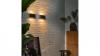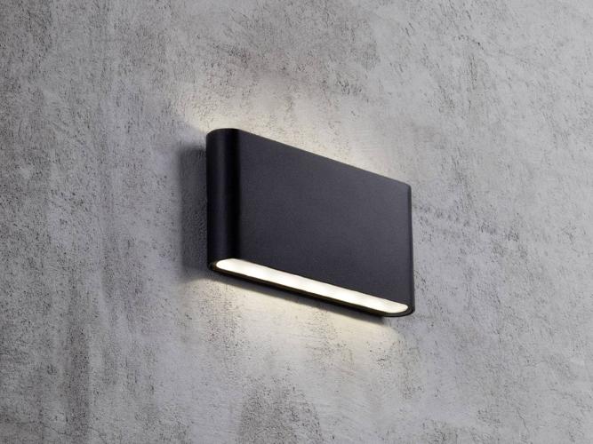 Deze prachtig vormgegeven wandspots schijnen het licht op een zeer sfeervolle manier zowel naar boven en naar beneden. Het grote voordeel van deze armaturen is dat ze slechts 3 cm uit de wand steken waardoor ze weinig ruimte in beslag nemen en op een subtiele wijze in de ruimte aanwezig zijn. De wandlampen kunnen perfect in de aan de voor of achter gevel, in de serre, aan de tuinafscheiding of op het terras worden gebruikt, maar kunnen ook in de woonkamer, de keuken de gang of de badkamer van extra sfeerlicht voorzien. De armaturen zijn snel en eenvoudig te monteren zullen in iedere ruimte voor een chique en unieke uitstraling zorgen. Lichtsterkte 2 x 6 Watt Led. Kleur behuizing: Zwart Afwerking: Mat. Afscherming: IP54 spatwaterdicht. Licht kleur: warm wit. Afmeting ca.: 17 x 9 x 3 cm.