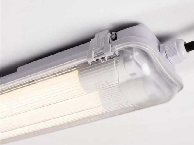 Deze A++ klasse IP65 armaturen hebben een lengte van 120 cm en een energie verbruik van slechts 2 x 18 watt. De inbegrepen LED TL buizen zijn snel en eenvoudig te plaatsen alsook vervangbaar. De lichtkleur is natuurlijk wit (4000K) met een totaal lichtopbrengst van 2 x 1800 lumen. Dit IP65 gecertificeerde waterdicht dubbele TL armatuur kan met meerdere worden gekoppeld en zowel in droge ruimten als in alle vochtige omgevingen worden gebruikt. Het armatuur is een perfecte vervanger van alle reguliere TL lampen met een vermogen van 2 x 36 watt en levert een besparing op van 50%. Producteigenschappen: Afmeting: 120 cm x 15 cm x 4.4 cm. Led lichbron: ja, lichtsterkte 36W, lichtkleur 4000K, lumen: 3600 lm, Straal hoek: 120 graden, Afscherming: IP65