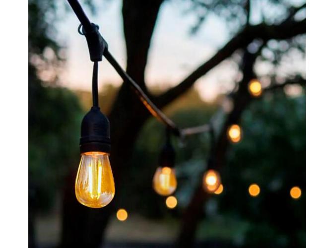 Deze prachtige lichtkettingen zijn geweldig om te zien en geven veel sfeervol licht. Met deze licht armaturen creëer je op snelle wijze zeer unieke en bijzondere licht decoraties welke je tuin direct sfeervol zullen maken. Dankzij de snel en eenvoudig te plaatsen lichtbronnen kunnen ze de tuin, het entree, de oprijlaan, het pad of terras op een mooie manier verlichten. De kettingen zijn zowel afzonderlijk te gebruiken maar ook koppelbaar en zullen iedere tuin, feestjes of partij direct extra sfeervol maken. Product eigenschappen: 4 x lichtkettingen a 15 meter, 230V, Schuko stekker: ja, Afwerking: IP54 spatwaterdicht, koppelbaar: ja, dimbaar: ja. aantal lichtpunten 15 x, afstand tussen lichtpunten ca 0.94 m, fitting E27. Dit betreft een volledig nieuw product