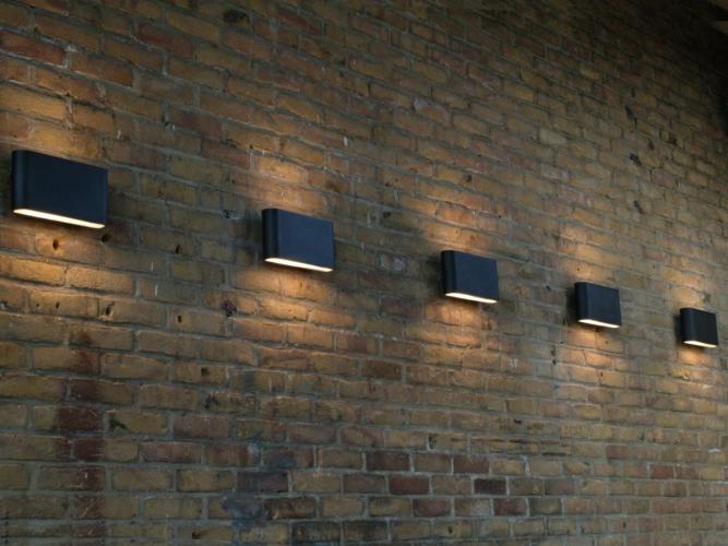 Deze prachtig vormgegeven wandspots schijnen het licht op een zeer sfeervolle manier zowel naar boven en naar beneden. Het grote voordeel van deze armaturen is dat ze slechts 3 cm uit de wand steken waardoor ze weinig ruimte in beslag nemen en op een subtiele wijze in de ruimte aanwezig zijn. De wandlampen kunnen perfect in de aan de voor of achter gevel, in de serre, aan de tuinafscheiding of op het terras worden gebruikt, maar kunnen ook in de woonkamer, de keuken de gang of de badkamer van extra sfeerlicht voorzien. De armaturen zijn snel en eenvoudig te monteren zullen in iedere ruimte voor een chique en unieke uitstraling zorgen. Lichtsterkte 2 x 6 Watt Led. Kleur behuizing: Zwart Afwerking: Mat. Afscherming: IP54 spatwaterdicht. Licht kleur: warm wit. Afmeting ca.: 17 x 9 x 3 cm.