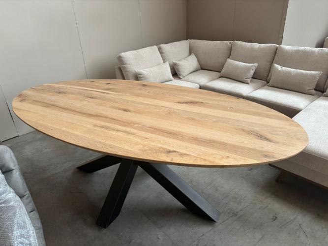 220x110cm , massief eiken tafel met zwarte metalen spider poot