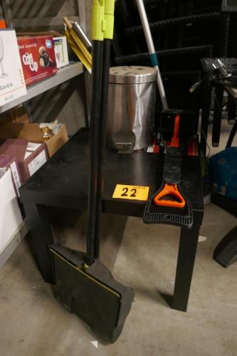 Divers huisraad : afvalgrijpers 2 modellen - inox vuilbakje - houten salontafeltje - telescopische borstel - plastieken kuip - plastieken bak