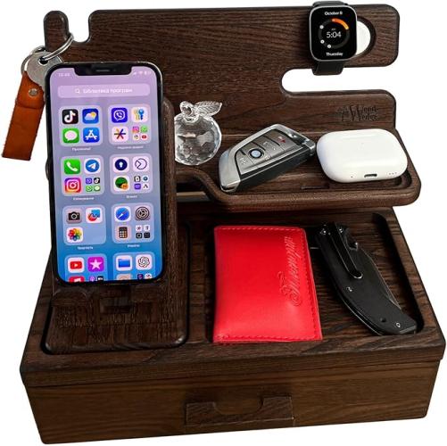 Ongebruikt, ok, compleet, cadeaus voor mannen, verjaardag, handgemaakt, houten telefoon, dockingstation, bureau, nachtkastorganizer, heren, cadeau voor echtgenoot, papa, opslag, verjaardagscadeau voor man, B0DPVW9BZL