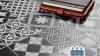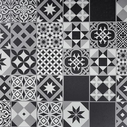 Ongebruikt, ok, compleet, ARTENS - pvc-vloerbedekking - zelfklevende tegels - cementtegels patroon - zwart/wit - 2,23 m² / 12 tegels, B08THWVSZ4