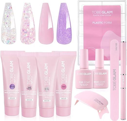 Ongeopend. TOBEGLAM Poly Nail Extension Gel Tube 4 kleuren x 15 ml lila glitter builder gel set UV gel nagels compleet met lamp kunstnagels UV acryl gel met capsule set, B08V8L1KRM