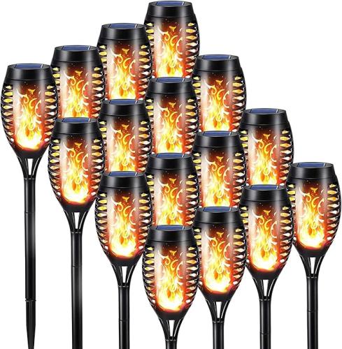 Gebruikssporen, getest, 13st ipv 15, NEXVIN Fakkels op zonne-energie voor buiten, tuin, 16 stuks, met realistische vlammen, IP65, waterdicht, decoratie voor gazon en pad, tuin, hal, B0BPC6JFLX