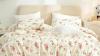 Ongebruikt, Freyamy Omkeerbaar bloemen beddengoed 135 x 200 cm 4-delig beige roze bladeren bloemen meisjes beddengoedsets 100% microvezel dekbedovertrek 2 dekbedovertrekken met ritssluiting en 2 kussenslopen 80 x 80, B0D6VP35TH