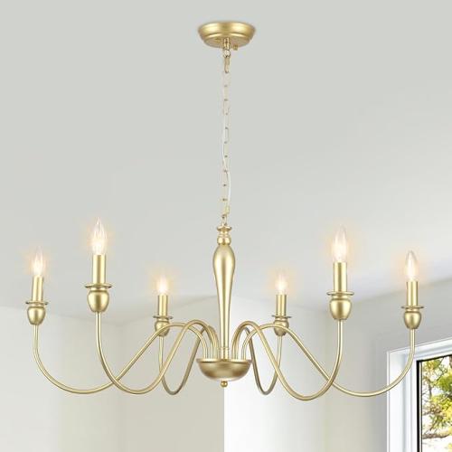 Ongebruikt, getest en werkend, volledig, ok, ASHUAQI Kroonluchter Vintage Hanglamp Goud, 6 Lampen Kroonluchter Goud, Klassieke Kaars Hanglamp Eettafel Plafondlamp Hanglamp voor Woonkamer, Slaapkamer, Eetkamer, Keuken, Gang, B0DP4JYZQ4