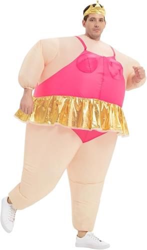 Ongebruikt, getest en werkend, volledig, ok, verpakking ontbreekt, JYZCOS Opblaasbaar Ballerina-kostuum voor volwassenen, opblaasbaar, grappig, dik, Halloween, carnaval, roze, groot, B087X6ZDXG