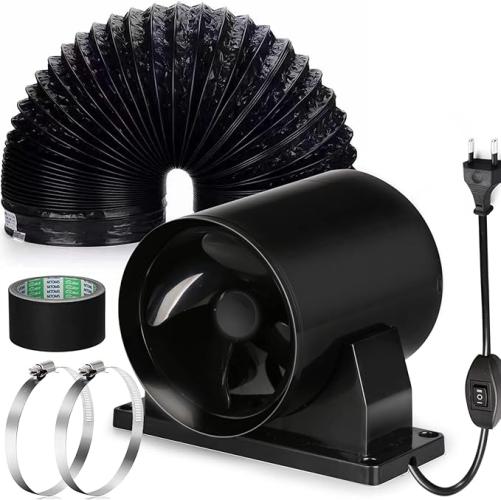 Ongeopend, Hose Vary Axiale luchtafzuiger, 100 mm, buisventilatorset (leidingsslang, klemmen), met 2 snelheden, knopschakelaar, B0BQDZCX8D