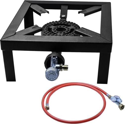Ongebruikt, ok, niet alle bouten en moeren aanwezig, Gaskoker, krukkoker, 8,0 kW, outdoor camping gaskoker 25 x 25 x 11 cm, incl. 150 cm propaangasslang en 50 mbar regelaar, B0BVHPQDSK