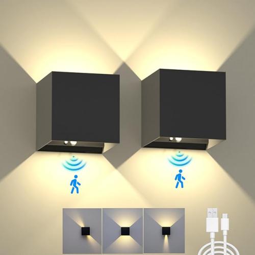 Ongebruikt, getest en werkend, compleet, kleine barst aan usb-poort, SURPALIG 2 stuks wandlamp voor binnen, met bewegingsmelder, accu, wandlamp zonder stroomaansluiting, zonder boren en draadloze wandlamp met schakelaar, energiebesparende led-wandlamp voor binnen, B0BX5D4KCN