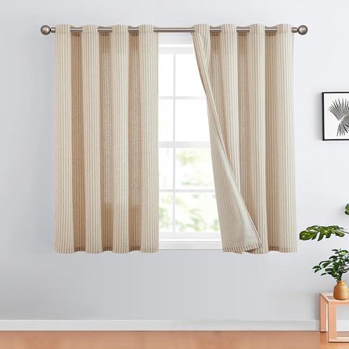 Ongeopend, set van 2 , TOPICK Linnen gordijnen gestreepte gordijnen met oogjes , beige linnenlook , half transparant , 130x145 bruin op beige , B09V53WQ2S