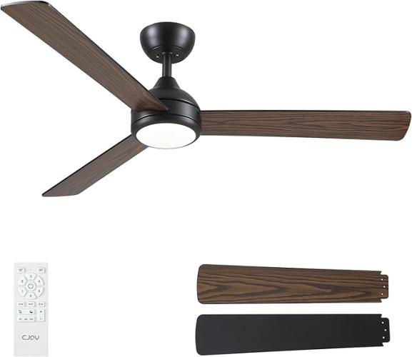 Ongeopend, in seal, CJOY Plafondventilator met licht (132 cm), zwart en hout, plafondventilator met licht en stille afstandsbediening, 6 snelheden, 3 CCT, dimbaar, omkeerbaar, timer, B0DRPBZK4V