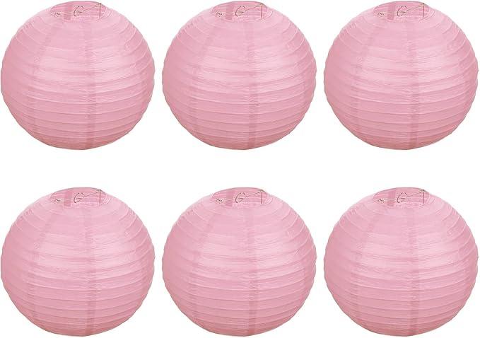 Ongeopend, in seal, PATIKIL 12 inch papieren lantaarns, 6 stuks ronde opvouwbare hangende lampschaduw voor bruiloft thuis feest, roze, B0B4ZMR2S9