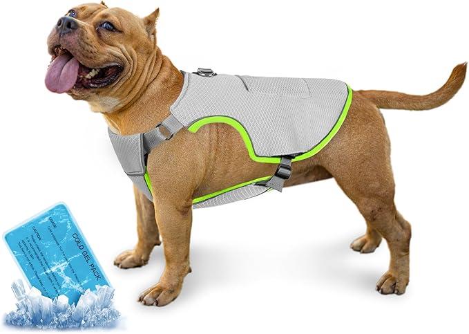 Ongeopend, ok, Koelvest voor honden, coole jas, zelfgelkoelende jas voor honden, grote hond, ijskoelingsharnas, jassen voor puppy's, zonwering, verstelbare bandjes, grijs, XXL, B0CXT11WZL