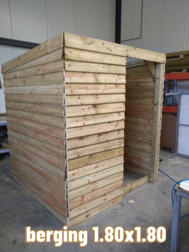 schuilhut 1.80 x1.80 geimpregneerd grenen met 3 gesloten wanden en voorwand wordt geleverd als bouwpakket bevestigingsmateriaal inbegrepen excl nietjes dakplaten niet inbegrepen.