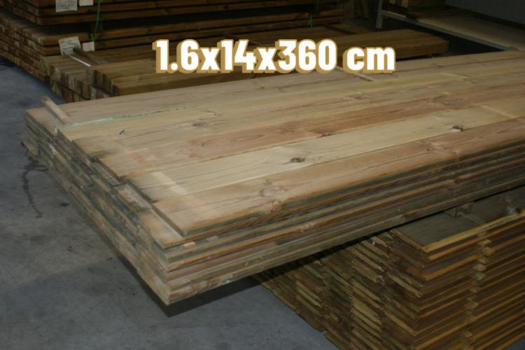 100x Plank, geïmpregneerd grenen, 1,6x14x360cm met vier afgeronde hoeken