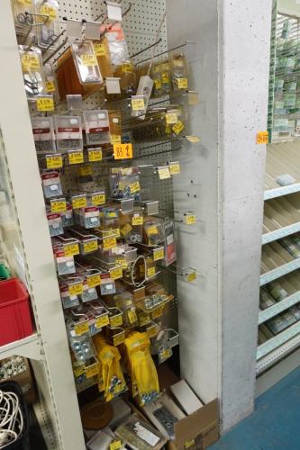 plm 100 items, oa: kurkentrekkers,meetotestellen,stopcontactdozen,samen met rek ijzerwaren met plm 100 items
