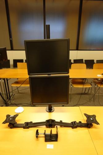 Vertical mounted dual monitor base, with 2x 17" Dell monitor + arm for dual monitors horizontal + 2de voet