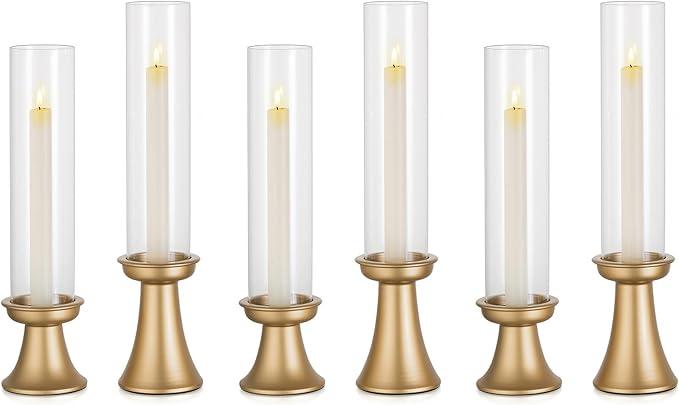 Ongeopend, NUPTIO Orkaan Kandelaar Goud 6 Stuks Grote Glazen Kandelaars Taper Kaars Bruiloft Centrepieces voor Tafels Eetkamer Mantel Kerstmis Home Decor, B0D8PB6ZZT