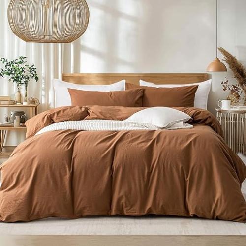 Ongebruikt, volledig, ok, Freyamy katoenen beddengoedset 200 x 220 cm, 2 x kussensloop 80 x 80 cm, karamel, B0DF73GDV2
