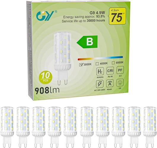 Ongebruikt, getest en werkend, volledig, ok, GY G9 LED-lamp, Warmwit, 3000 K, 4,9 W, 908 lm, komt overeen met 75 W halogeen, Energiebesparende G9 Led-Lamp, Klasse B, 23 mm x 74 mm, 220-240 V, niet dimbaar, niet flikkerend, 10 stuks, B0D6W1G6V4