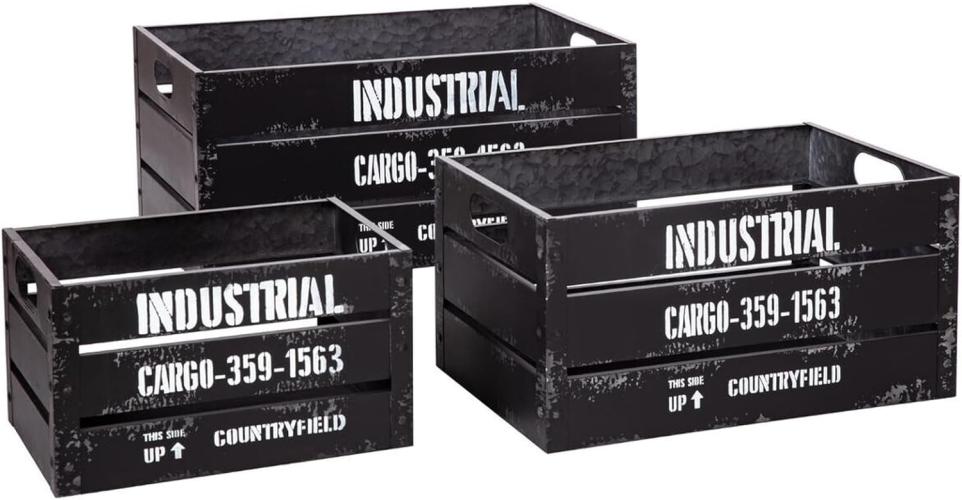 Ongebruikt, ok, Atmosphera Opbergkisten van metaal, zwart, retro, industrieel, 3 stuks, B07WT4NCJS