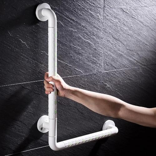 Ongeopend, ok, licht beschadigde verpakking, PEALOV Douchehandgreep, L-vormige veiligheidsleuning voor de badkamer, antislip leuning van roestvrij staal met lichtring en lichtdeeltjes, wandmontage, voor badkuip, trapleuning, 60 x 40 cm, B09CD1X85S