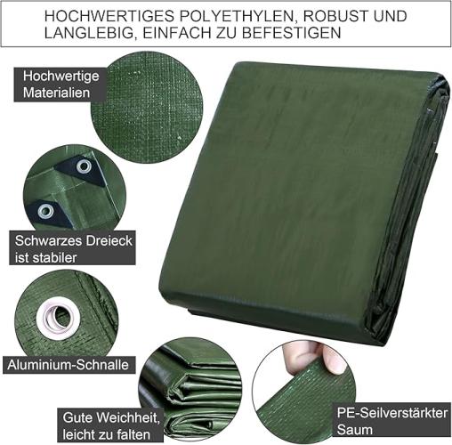 Ongeopend, in seal, STARPYNG Dekzeil, waterdichte, duurzame poly-zeilafdekking, geschikt voor versterkte randen van daken, camping, terrassen, zwembaden, boten (groen, 140 g/m², 5 m x 6 m), B0BGKC2B75