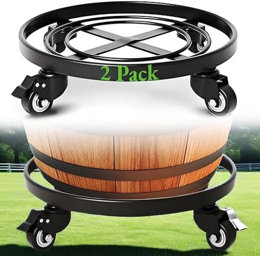 Ongebruikt, ok, Amagabeli Metalen plantenhouder met wielen, zware 36 cm, ronde plantenstandaard voor buiten op wielen, tuin, bloempot, statieven, wielen, dolly voor kamerplanten, trolleywielen, rolonderzetter, zwart, B08699W1Q9