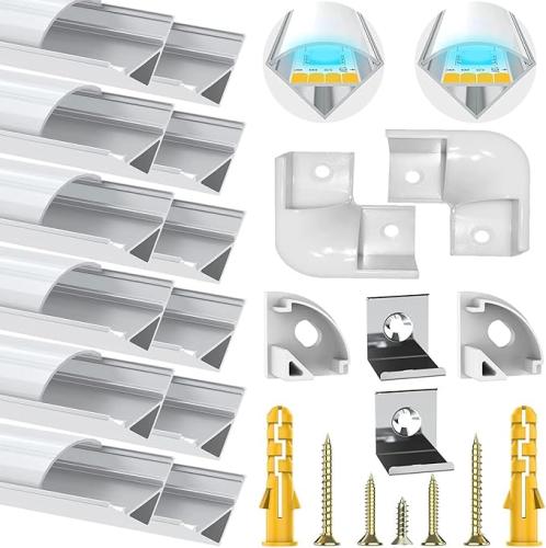 Ongebruikt, volledig, ok, ledstrip niet inbegrepen, Chesbung LED aluminium profiel 1m, 13 stuks V-vormige LED-kanalen voor LED-strips/band tot 12 mm incl. LED-profielen met melkwitte afdekking, LED-diffusers met eindkappen, montageclips, B0BTCSL3VR
